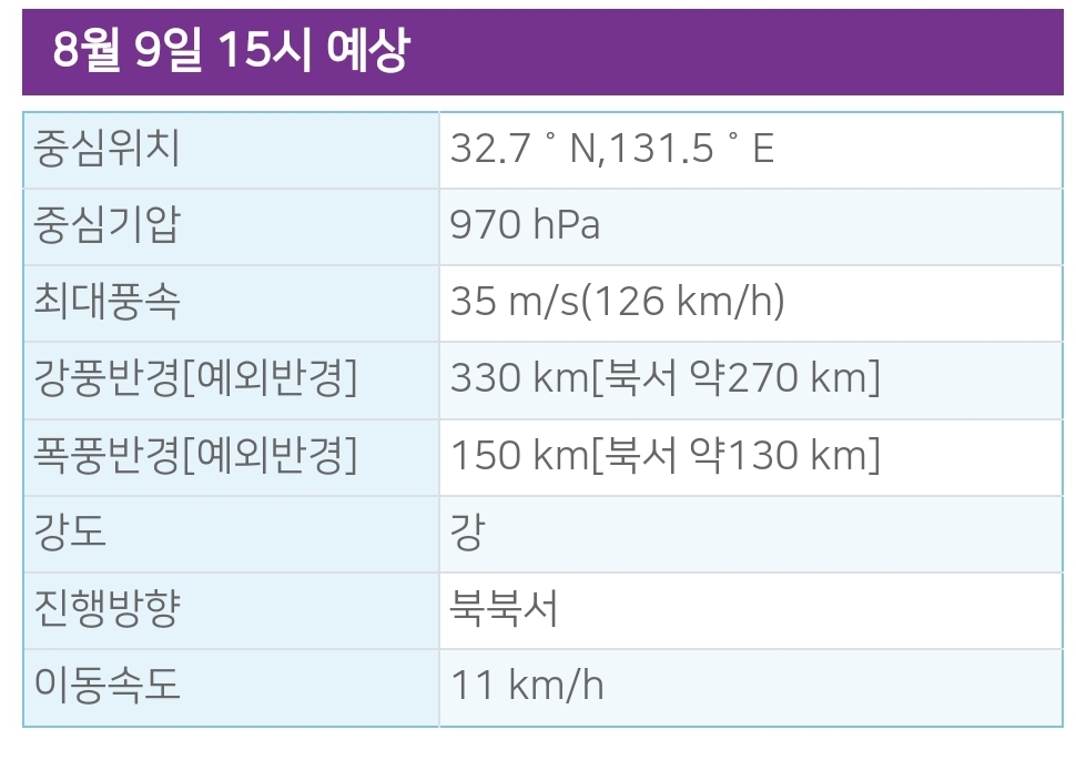 태풍이 일본을 관통하더라도 세력을 유지하면서 북상할 가능성이 있으며, 특히 일본 북부 해상까지만 진출해도 남부지방이 태풍에서 비구름대가 발달하는 구역에 들어갈 수 있다.