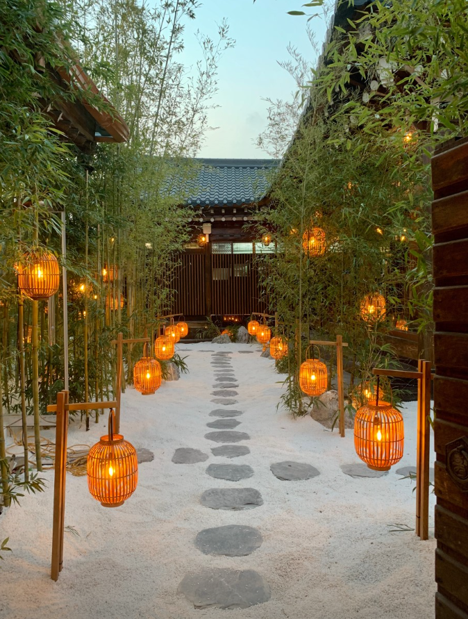 온천집은 비주얼 맛집으로 유명하며, 3단 도시락에 샤부샤부 메뉴가 담겨 있다는 것이 특징입니다. 얇게 썬 쇠고기와 갖은 야채를 다양한 소스에 찍어먹는 1인 냄비 요리가 인기입니다. 정원이 이쁘게 꾸며져 있어서 보는 맛 먹는 맛 모두 좋은 곳입니다.