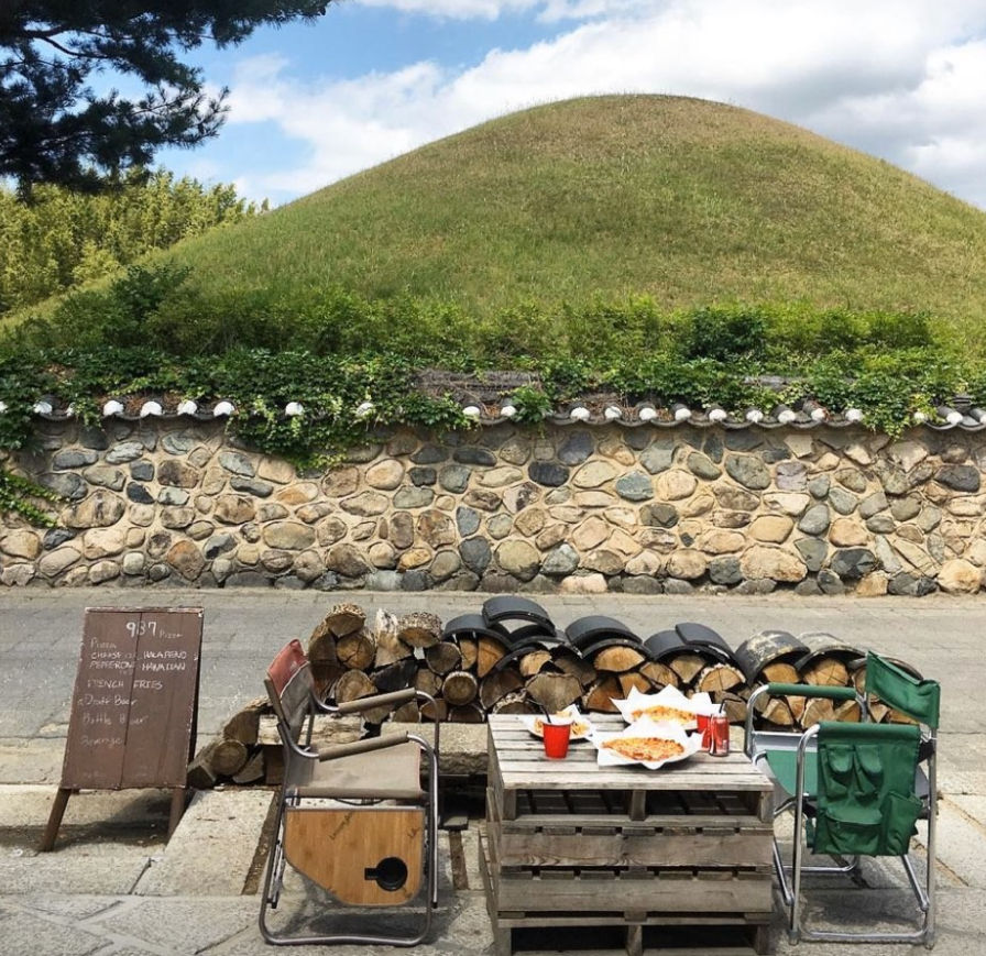 이 음식점은 왕의 무덤을 바라보며 피자를 즐길 수 있는 독특한 공간으로 알려져 있습니다. 대릉원 돌담길을 따라 걷다 보면 한옥지붕에 벽돌건물을 보실 수 있어요. 생방송투데이에도 출연한 반반피자! 오븐스파게티 등이 인기입니다.