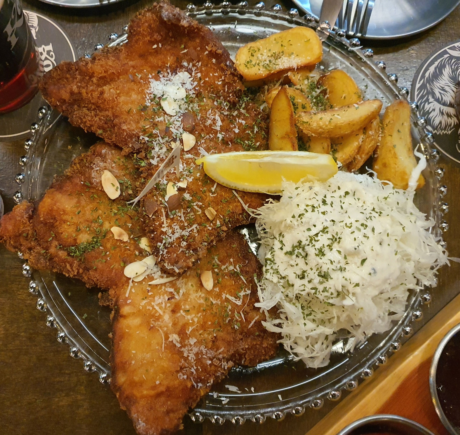 특히 수제맥주 코젤은 달달하고 세지 않아 여성분들에게 인기 많아요. 칵테일 중에는 한 여름 밤의 꿈이라는 메뉴가 부모님이 직접 키우신 사과 나무의 과일로 만든 수제사과청 칵테일입니다. 안주요리로는 슈니첼이 인기 있는데요. 돈까스를 버터에 굽고 레몬즙 뿌려서 딸기쨈과 먹는 요리인데 기존에 알던 돈까스와 차원이 달라요. 그리고 크리스피 치킨은 생닭만 사용하고 미리 튀겨놓지 않고 주문 즉시 조리하니 바싹한 맛이 일품입니다.