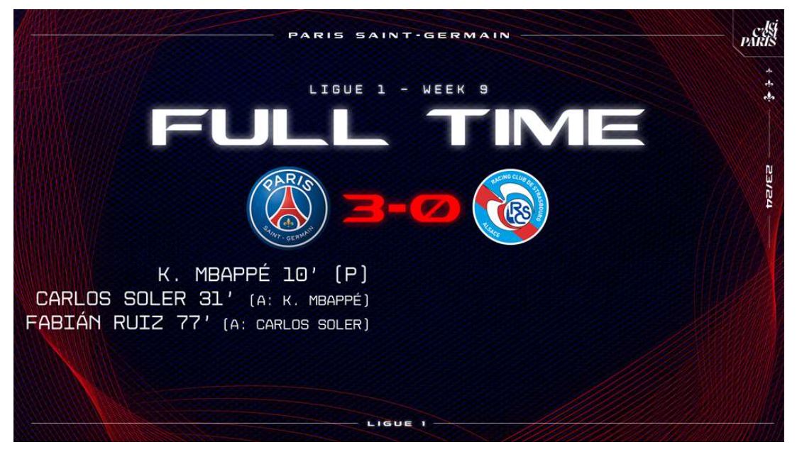 PSG와 스트라스부르 경기 결과 : 3-0 승리