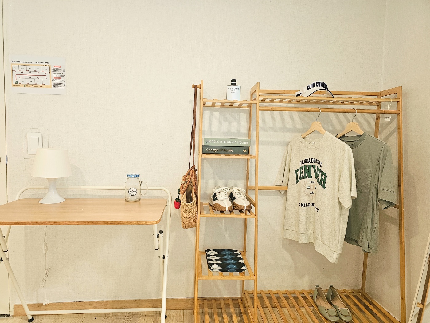 각 방에는 편안한 침대, 에어컨, 넓은 창, 협탁, 스탠드, 책상, 의자, 거울, 그리고 화장실이 완비되어 있어요. 주방에는 편리한 가전기기들이 갖춰져 있으며, 삼성 그랑데 AI 세탁기와 건조기가 무료로 제공됩니다. 쌀, 라면, 커피 등의 생활필수품도 무료로 제공되어 생활비 절약에도 도움이 됩니다.