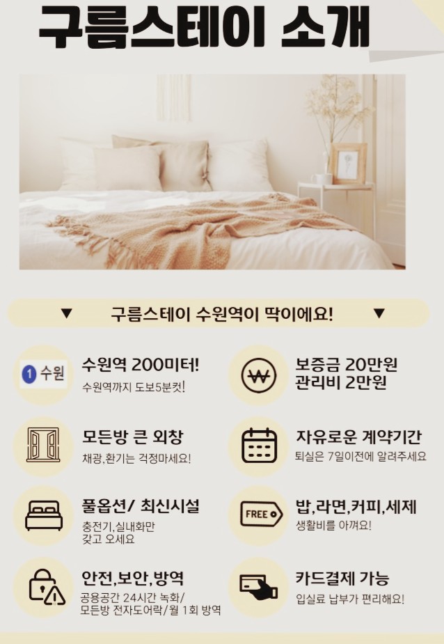 수원역 구름스테이 프리미엄 원룸, 당신의 새로운 시작을 위한 완벽한 선택입니다.