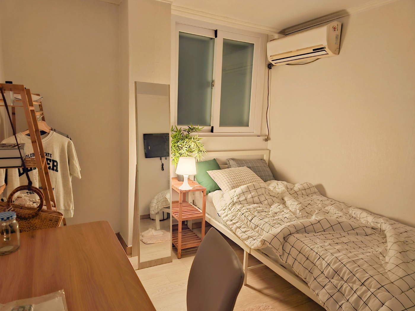 2. 시설: 최신 올수리 원룸으로 모든 방에 햇빛과 채광이 자유롭게 들어오는 큰 창, 에어컨, 개별 화장실 완비.