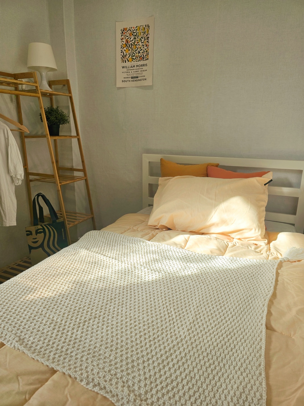 각 방에는 편안한 침대, 에어컨, 넓은 창, 협탁, 스탠드, 책상, 의자, 거울, 그리고 화장실이 완비되어 있어요. 주방에는 편리한 가전기기들이 갖춰져 있으며, 삼성 그랑데 AI 세탁기와 건조기가 무료로 제공됩니다. 쌀, 라면, 커피 등의 생활필수품도 무료로 제공되어 생활비 절약에도 도움이 됩니다.