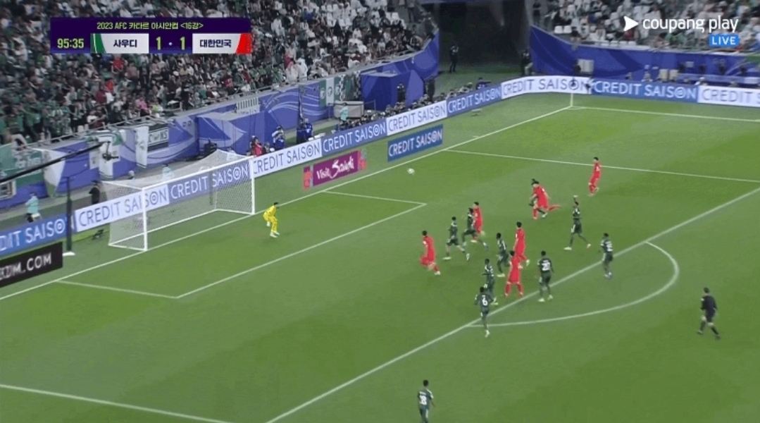 연장전에서도 양 팀은 치열한 공방을 이어갔습니다. 한국은 연장 전반 7분, 이강인의 코너킥을 김민재가 헤더슛으로 연결했지만, 사우디아라비아의 골키퍼가 또다시 선방으로 막아냈습니다. 연장 후반에도 한국은 여러 차례 결정적인 득점 기회를 맞았지만, 사우디아라비아의 골키퍼는 끈질긴 선방으로 한국의 공격을 저지했습니다.