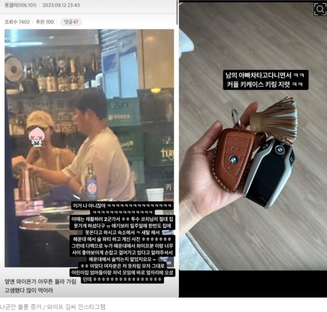 롯데 자이언츠 나균안 투수의 불륜 사건, 아내가 폭로