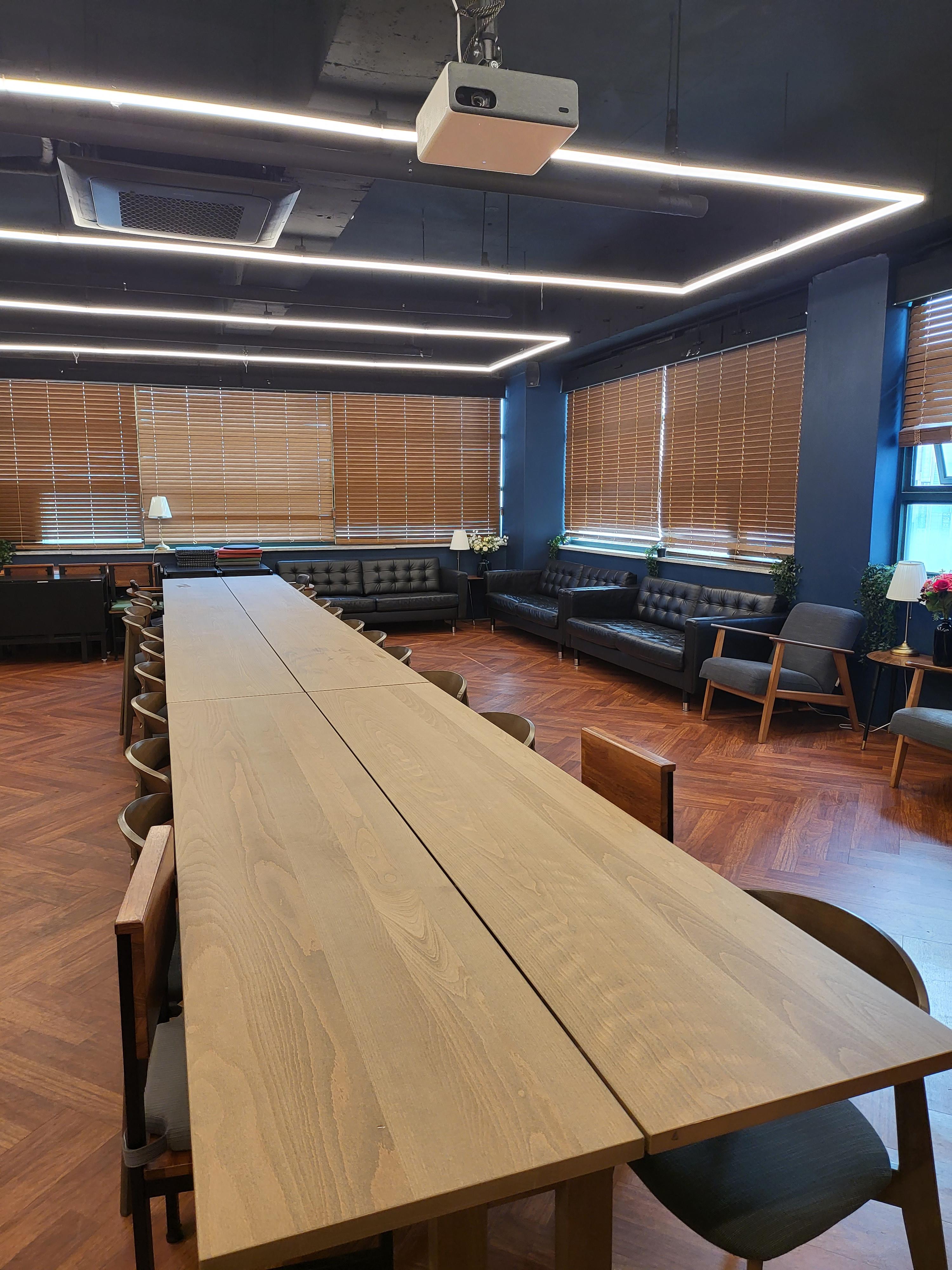에버라인 강남대역에서 바로 앞이라는 위치 덕분에 팀원 모두가 대중교통을 이용하여 손쉽게 도착할 수 있었습니다. 회의실에 들어서자마자 우리를 맞이한 것은 모던하고 세련된 인테리어였습니다. 고급스러운 분위기가 팀워크를 다지고, 창의적인 아이디어를 나누는 데 완벽한 환경을 제공해주었습니다.