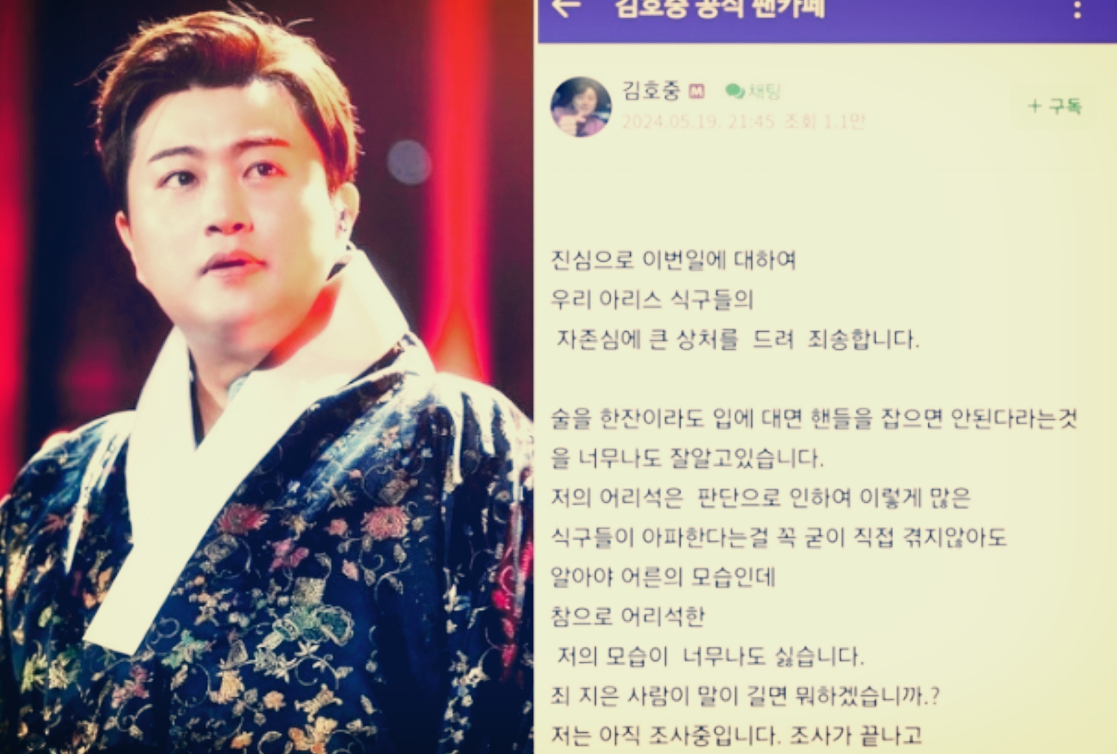 처음에는 음주운전을 강력히 부인했던 김호중 씨는, 국립과학수사연구원의 감정 결과와 함께 여러 정황 증거가 나오자 입장을 바꾸게 되었습니다. 김 씨는 5월 19일 오후 10시 9분경 소속사를 통해 사과문을 발표하며 “저는 음주운전을 했습니다. 크게 후회하고 반성하고 있습니다. 경찰 조사에 성실히 임하겠습니다.”라고 밝혔습니다. 또한, “저의 한순간의 잘못된 판단이 많은 분들에게 상처와 실망감을 드려 진심으로 죄송하다”고 덧붙였습니다.