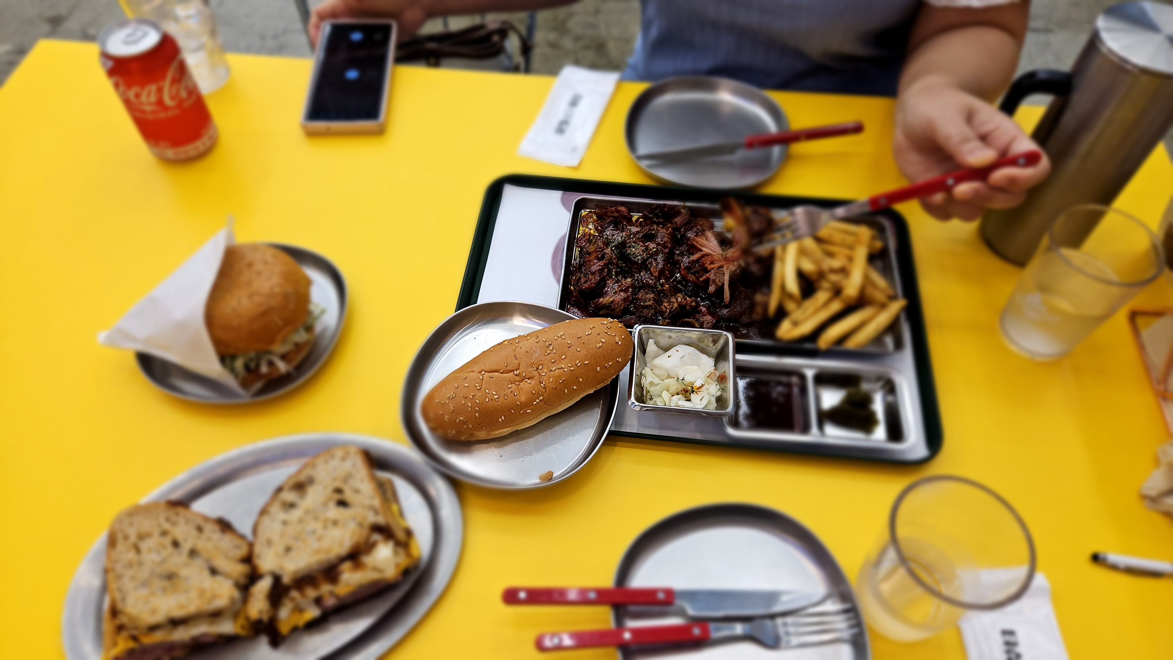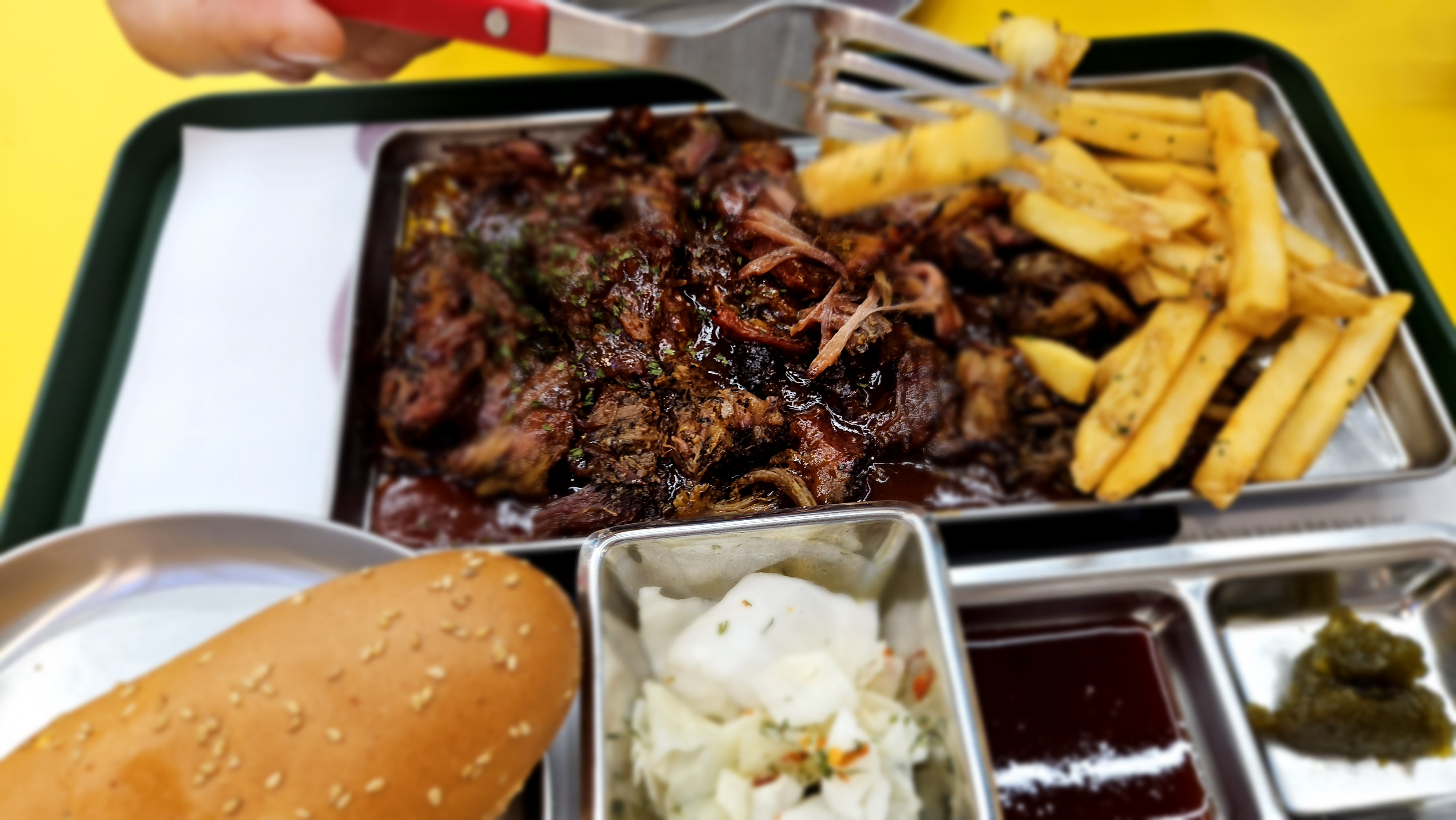 먼저 나온 할라피뇨 풀드포크를 한입 먹는 순간, 정말 깜짝 놀랐어요! 10시간 동안 저온에서 조리해서 그런지 고기가 입에서 살살 녹는 느낌이었거든요. 할라피뇨의 매콤함이 풀드포크의 고소함과 어우러져 계속 먹게 되더라고요. 혼자 먹다가 '아, 이거 친구들이랑 같이 왔어야 했는데!' 하는 생각이 들 정도였어요.