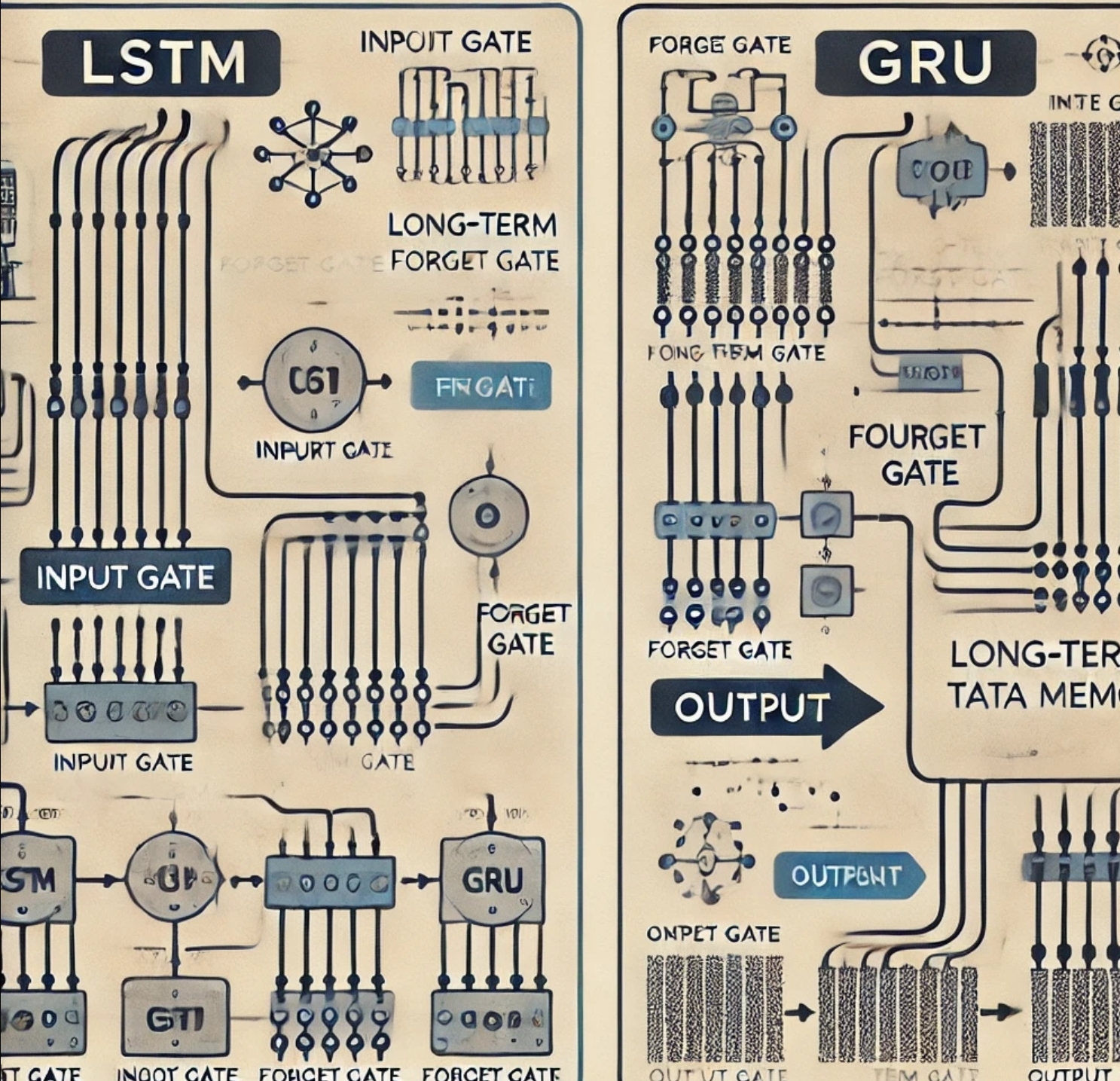 GRU는 LSTM보다 단순한 구조를 가지고 있습니다. GRU는 LSTM에서 사용되는 여러 게이트 중 일부를 결합하여 구조를 단순화하였습니다. 이는 모델의 학습 속도를 높이고, 계산 비용을 줄이면서도 높은 성능을 발휘할 수 있도록 합니다.