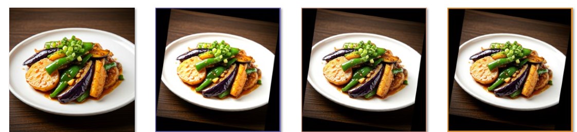 제일 오른쪽이 원본이고, 차례대로 생성된 변형된 이미지입니다. 자세히 보시면 각도 외에도 테두리에 색상이 들어가 있습니다. 좀 더 다르게 변형도 가능하니 옵션을 잘 설정하여 사용하시길 바랍니다.