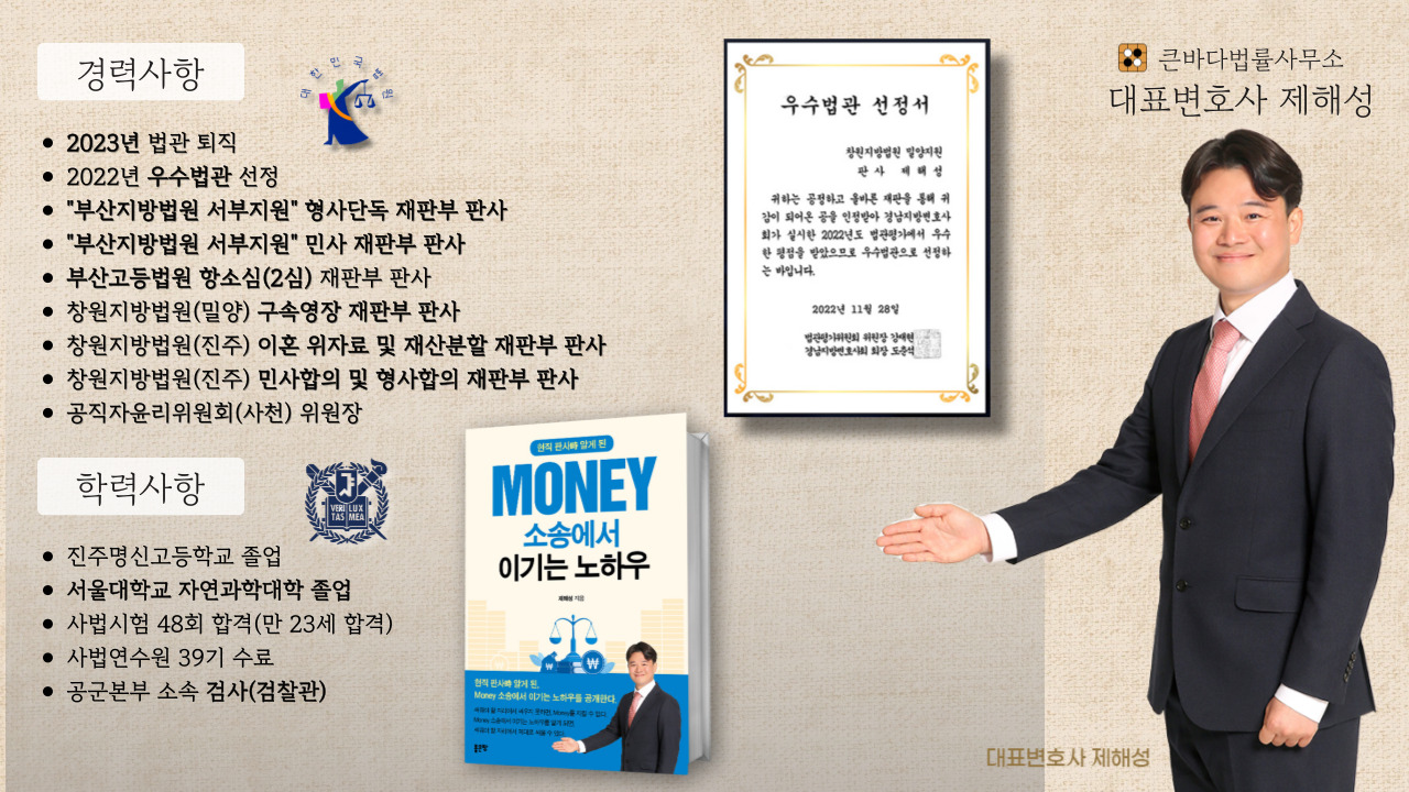 큰바다 법률사무소/23년 퇴임/판사 경력/우수법관/고등법원 판사/재판장/서울대出/이혼/형사/구속영장/민사/MONEY 소송/항소심 전략센터