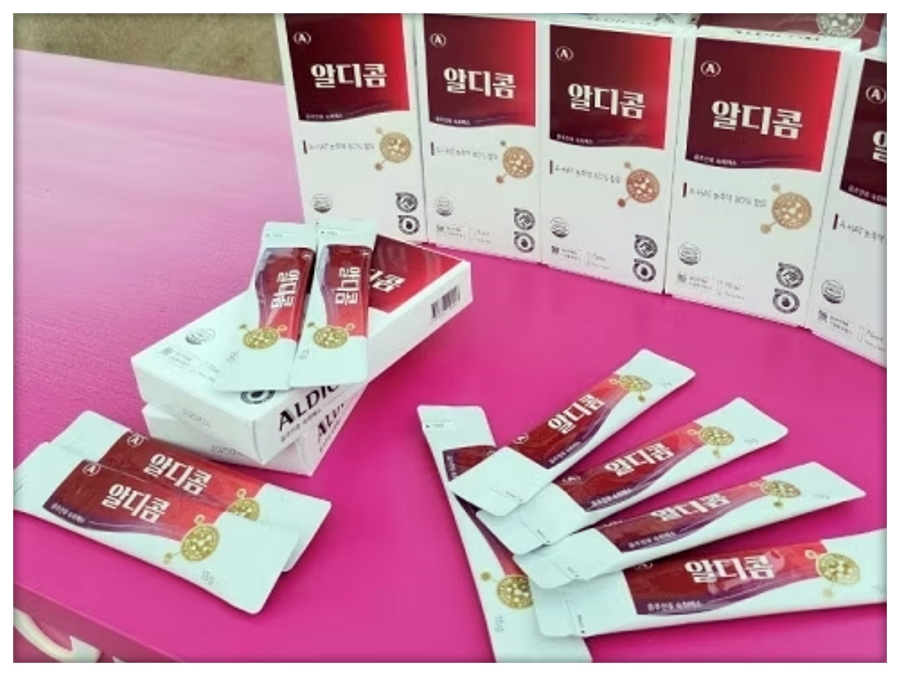 알디콤의 특별한 점은 불필요한 부원료나 첨가물을 최소화하고, 특허 조성물 농축액을 80% 이상 함유하여 흡수율을 극대화했다는 것입니다. 이러한 고순도 제형이 빠른 숙취해소에 도움을 주는 것으로 보입니다.