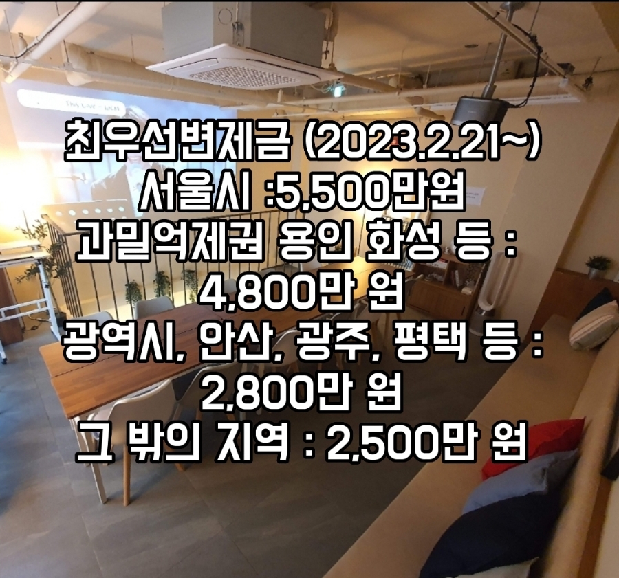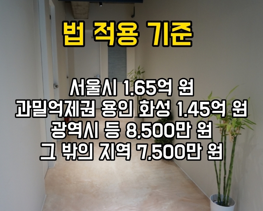 위에서 먼저 배당받을 임차인의 조건이 있다고 말씀드렸습니다. 보증금의 금액에 따라 기준 이하만 보호 대상이입니다. 이 기준을 넘어서면 법 자체를 적용을 받지 못합니다 .