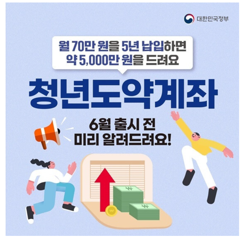 2023년 6월 15일 출시된 청년도약계좌는 청년들의 장기적인 자산 형성을 지원하는 정책형 금융상품입니다. 5년 동안 매달 일정 금액을 납입하면 만기에 본인의 총저축액에 정부 기여금과 이자를 추가로 주는 구조입니다.