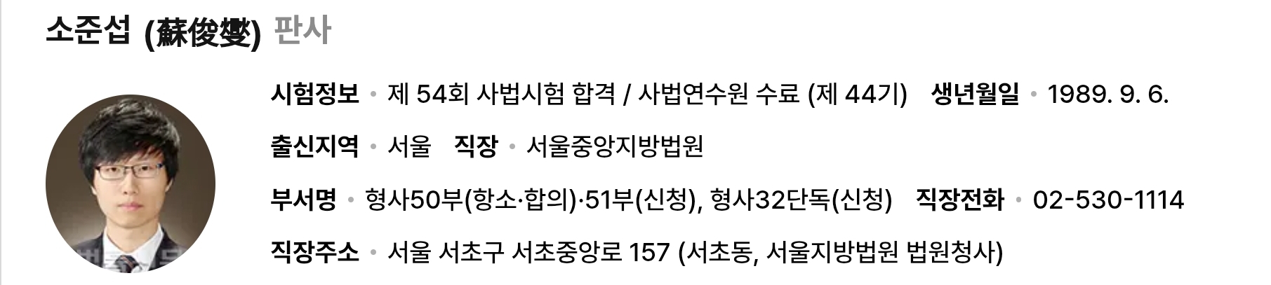 소준섭 판사 프로필