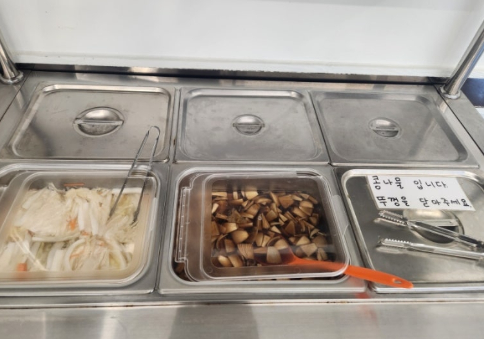 동탄영천동코다리 맛집에서 인상적이었던 또 다른 점은 셀프바의 다양한 반찬이었습니다. 백김치, 양파짱아찌, 콩나물 등 신선한 반찬들은 포장 시에도 넉넉하게 제공되었습니다. 특히 시원한 맛이 일품인 백김치는 코다리찜과 환상의 조화를 이루었습니다.