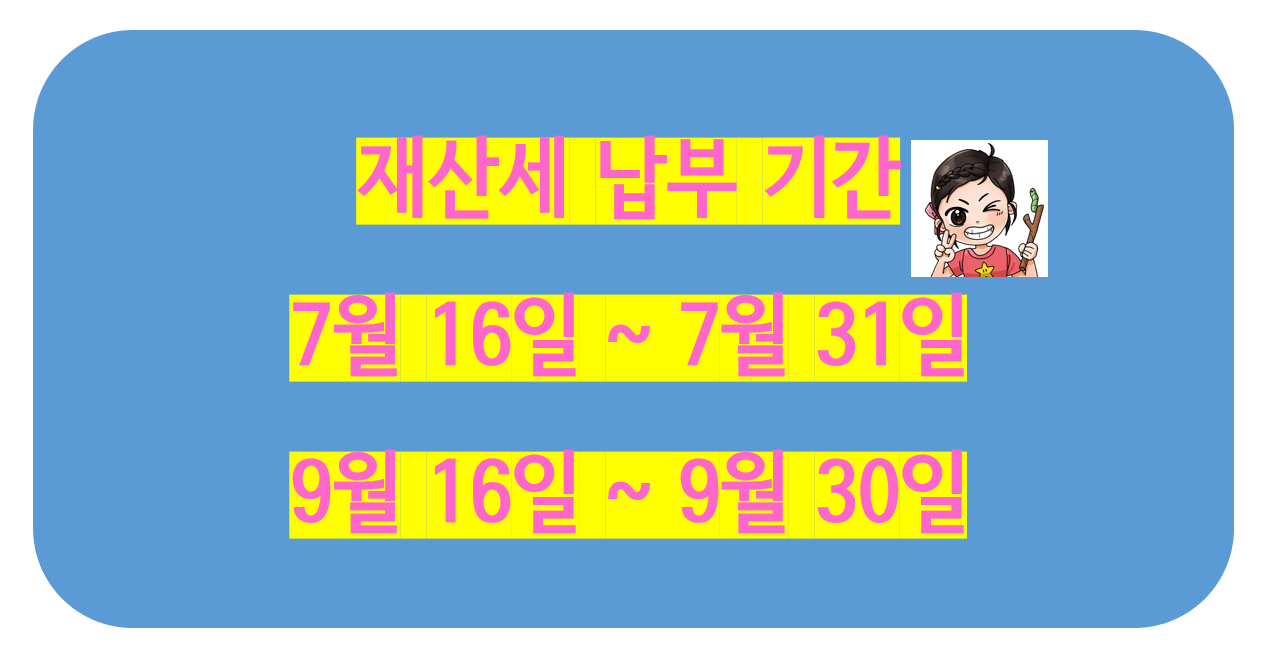 주택분은 1차분이 7월에, 2차분이 9월에 구청이나 시청에서 고지서를 발급하면, 1차분은 7월 16일부터 7월 31일 사이에 합니다. 2차분은 9월 16일부터 9월 30일까지 내시면 됩니다.