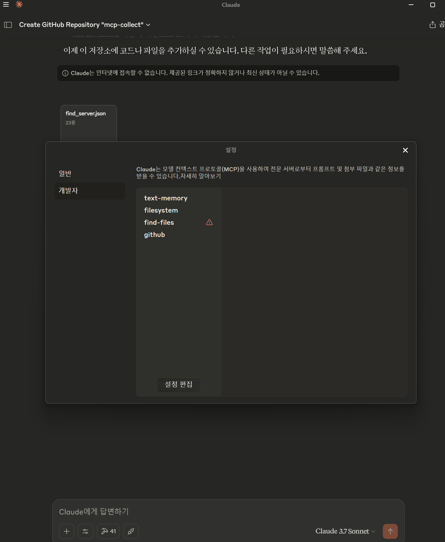 설정이 완료되면 Claude Desktop을 재시작하고, MCP 도구 아이콘이 활성화되었는지 확인하면 됩니다. 이제 Claude에게 "해당 폴더 내 파일 목록을 보여줘" 같은 명령어를 통해 파일 접근이 가능합니다.