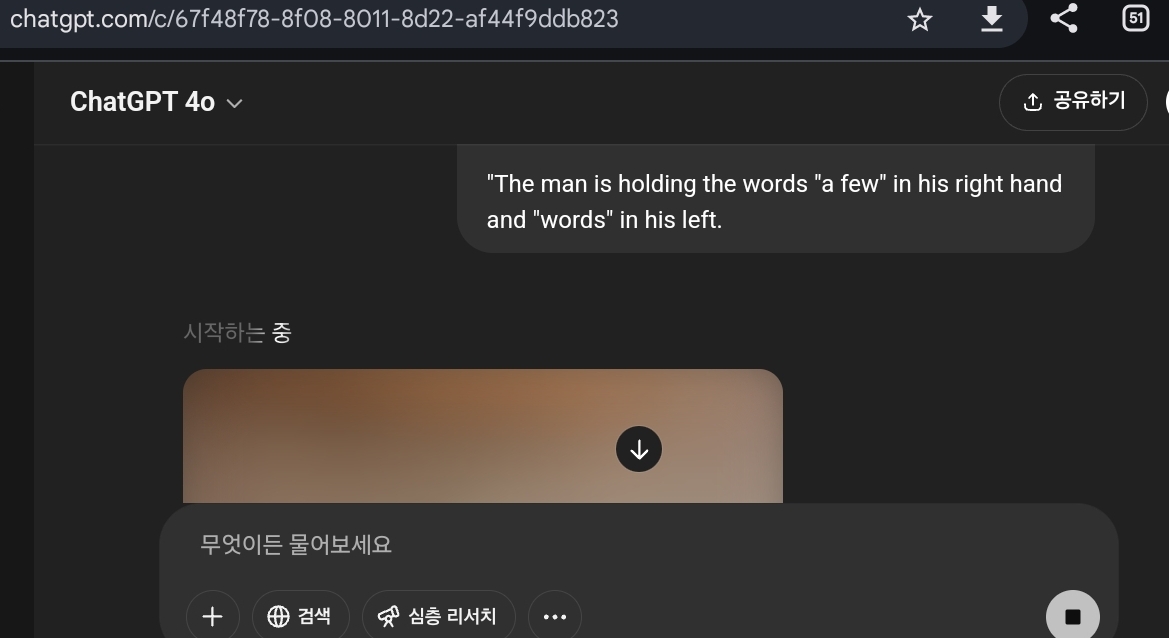 | ChatGPT 4o 이미지 생성 기능 업데이트 - Part1 디테일한 묘사 (1) | 2025.04.08 |