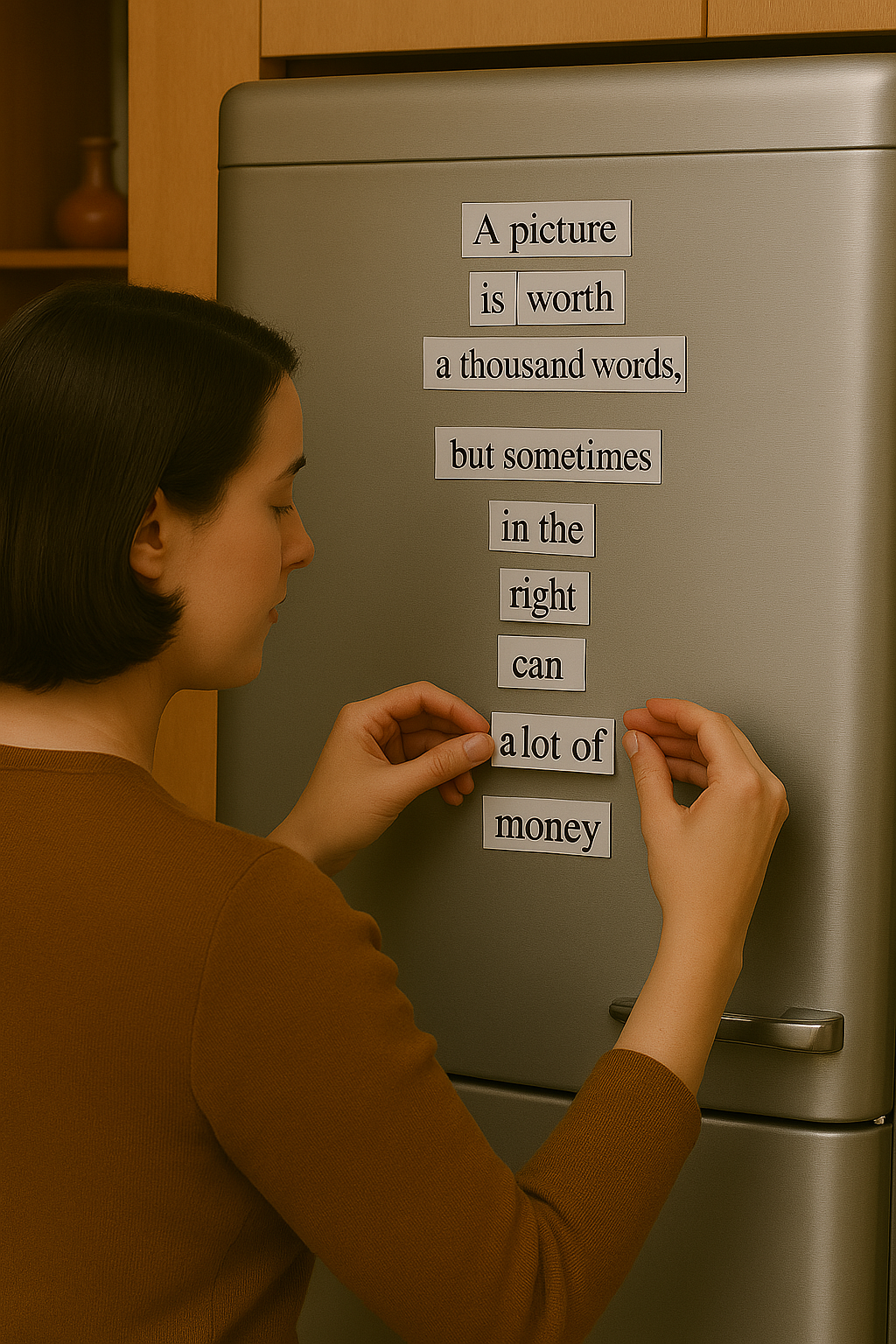 손에 들고 있는 a few, word 대신에 a lot of, money 로 바꿔서 생성