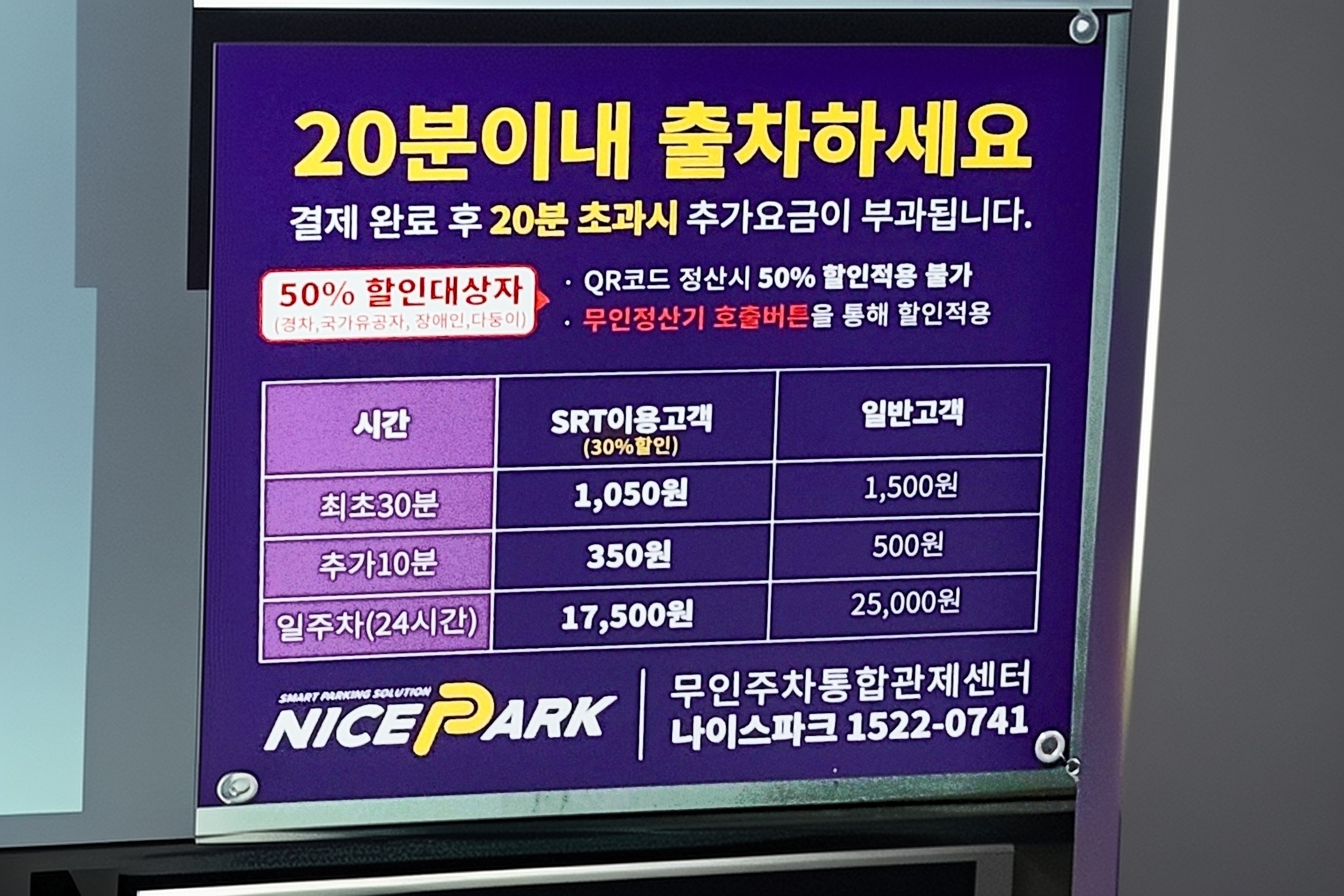 더욱 놀라운 것은 SRT 승차권을 제시하면 50% 할인된 5,000원에 하루 주차가 가능하다는 점입니다. 또한 밤 11시부터 다음 날 오전 10시까지는 아예 무료로 이용 가능해 야간 열차 이용객에게 특히 유리합니다.