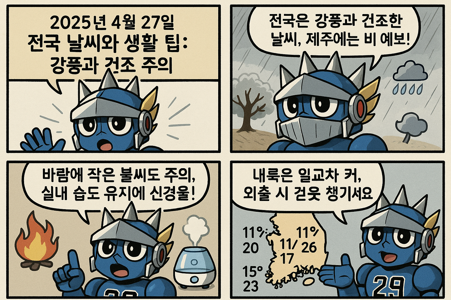안녕하세요, 여러분! 오늘은 2025년 4월 27일 일요일의 전국 날씨 정보를 바탕으로, 일상생활에서 유용한 팁과 함께 자세한 날씨 정보를 전해드리겠습니다. 이번 주말, 외출 계획이 있으신 분들이나 가정에서 보내실 분들 모두에게 도움이 되는 정보로 가득 채워보겠습니다. 자, 그럼 지금부터 시작해볼까요?