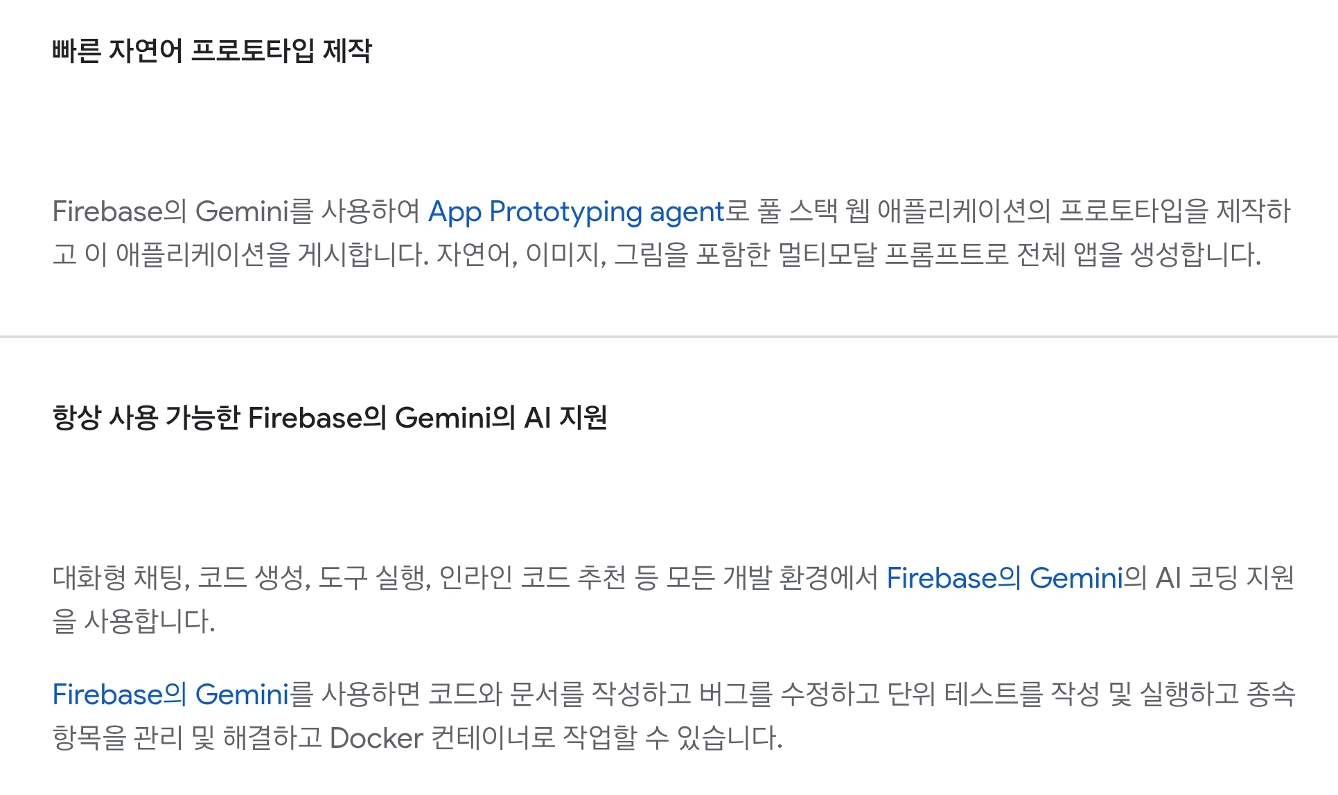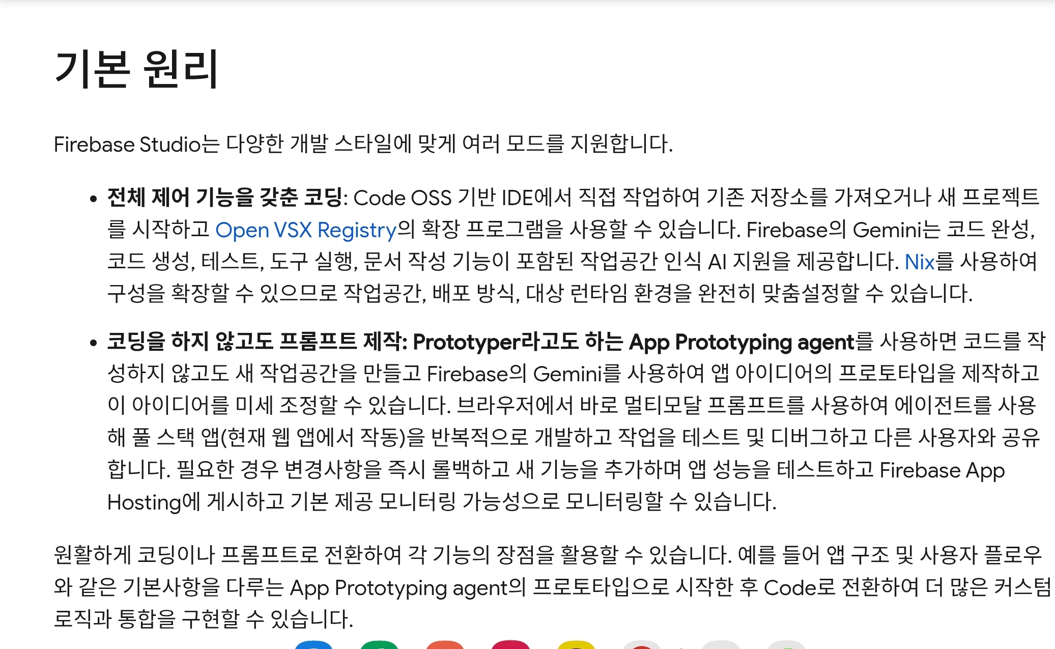 Databases (Firestore, Realtime Database): NoSQL 데이터베이스로, 실시간 동기화 기능이 강력. 웹소켓 등을 직접 구현할 필요 없이 실시간 앱을 만들기 용이.