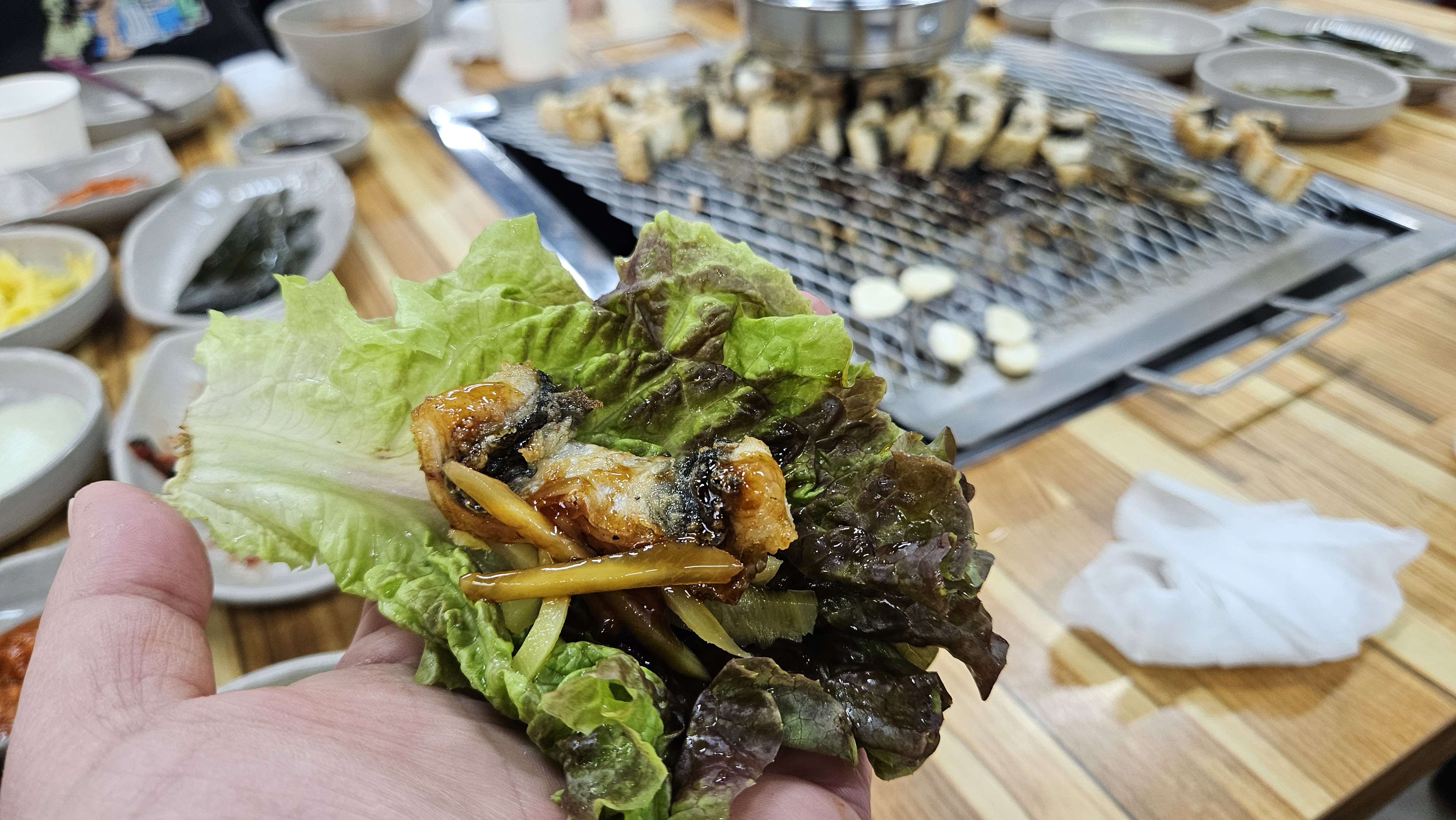 장어는 그냥 구워 먹어도 맛있지만, 여기선 생강소스에 콕 찍어 먹거나 파김치와 장아찌를 곁들여 먹는 맛이 정말 환상적이었어요. 개인적으로는 적당히 숙성된 파김치와 함께 먹을 때 그 진가가 폭발했죠. 장어의 느끼함을 잡아주면서도 고소함은 배가되어 몇 번이고 리필할 만큼 손이 계속 갔습니다.