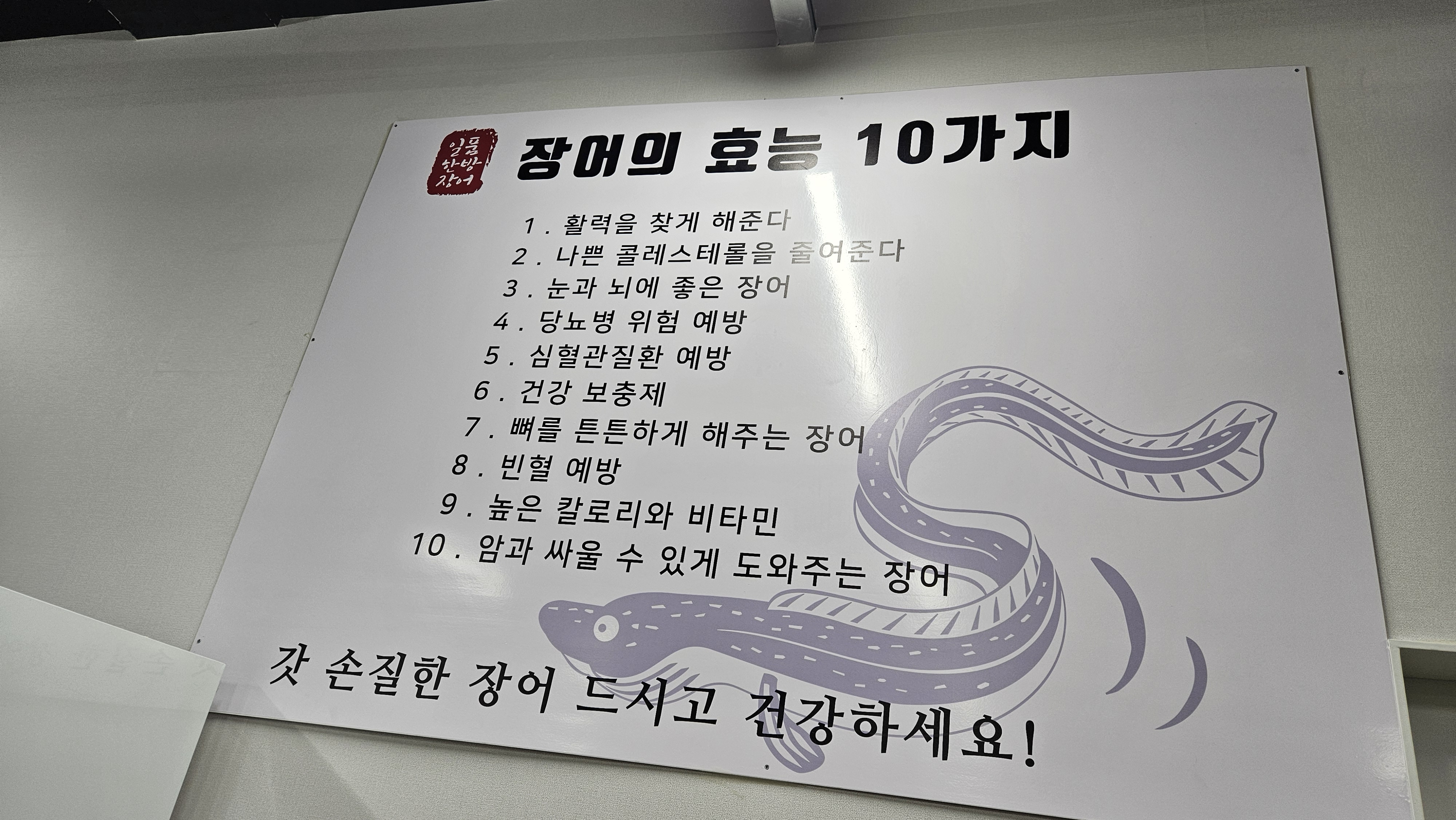 매장 안으로 들어서자 가장 먼저 눈에 들어온 건 투명한 수조 속에서 힘차게 헤엄치는 장어들이었어요. 그 활기찬 모습에서 신선함이 바로 느껴지더라고요. 직원분께 여쭤보니 이곳은 죽은 장어나 냉동장어는 절대 취급하지 않는다고 하셨어요. 오직 살아있는 장어만을 현장에서 직접 손질한다는 원칙을 고수하고 있다고 하더라고요.