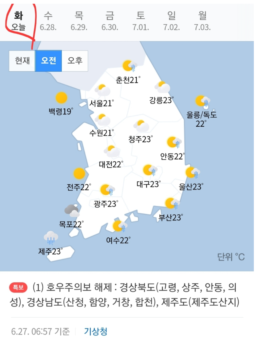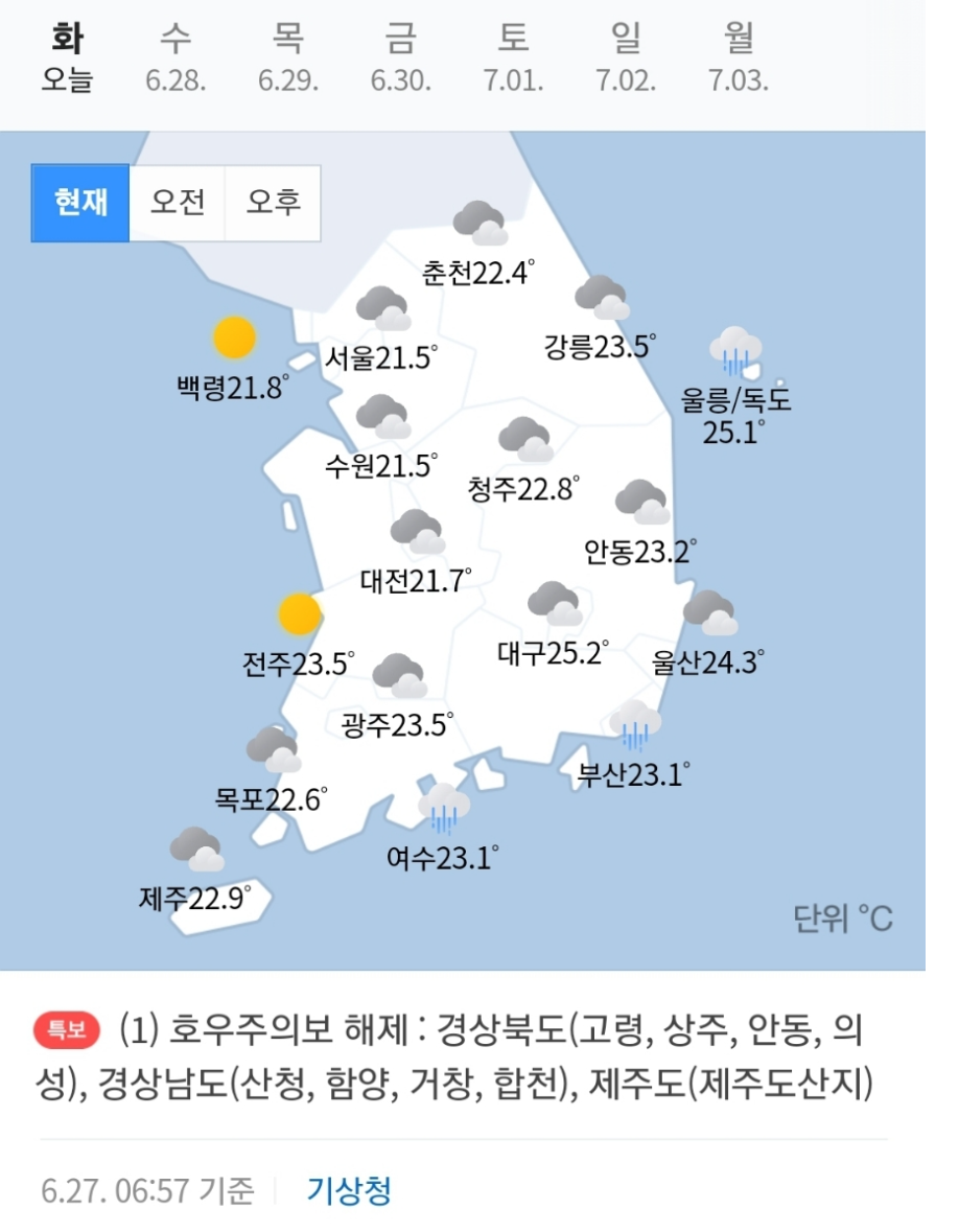 | 오늘 날씨 (6월 25일) 제주도 장마 시작 (0) | 2023.06.25 |