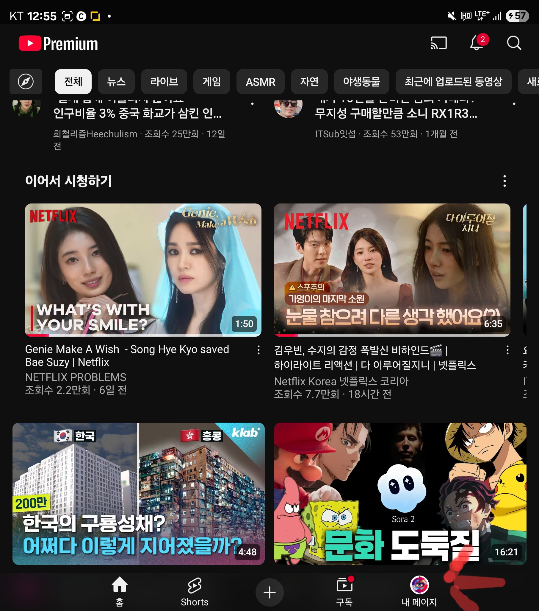 내 동영상 화면에서는 일반 영상과 쇼츠가 구분되어 표시됩니다. 상단에 있는 Shorts 탭을 클릭하면 본인이 업로드한 모든 쇼츠 영상들이 리스트로 정리됩니다. 여기서 썸네일을 바꾸고 싶은 특정 쇼츠를 찾아야 합니다.