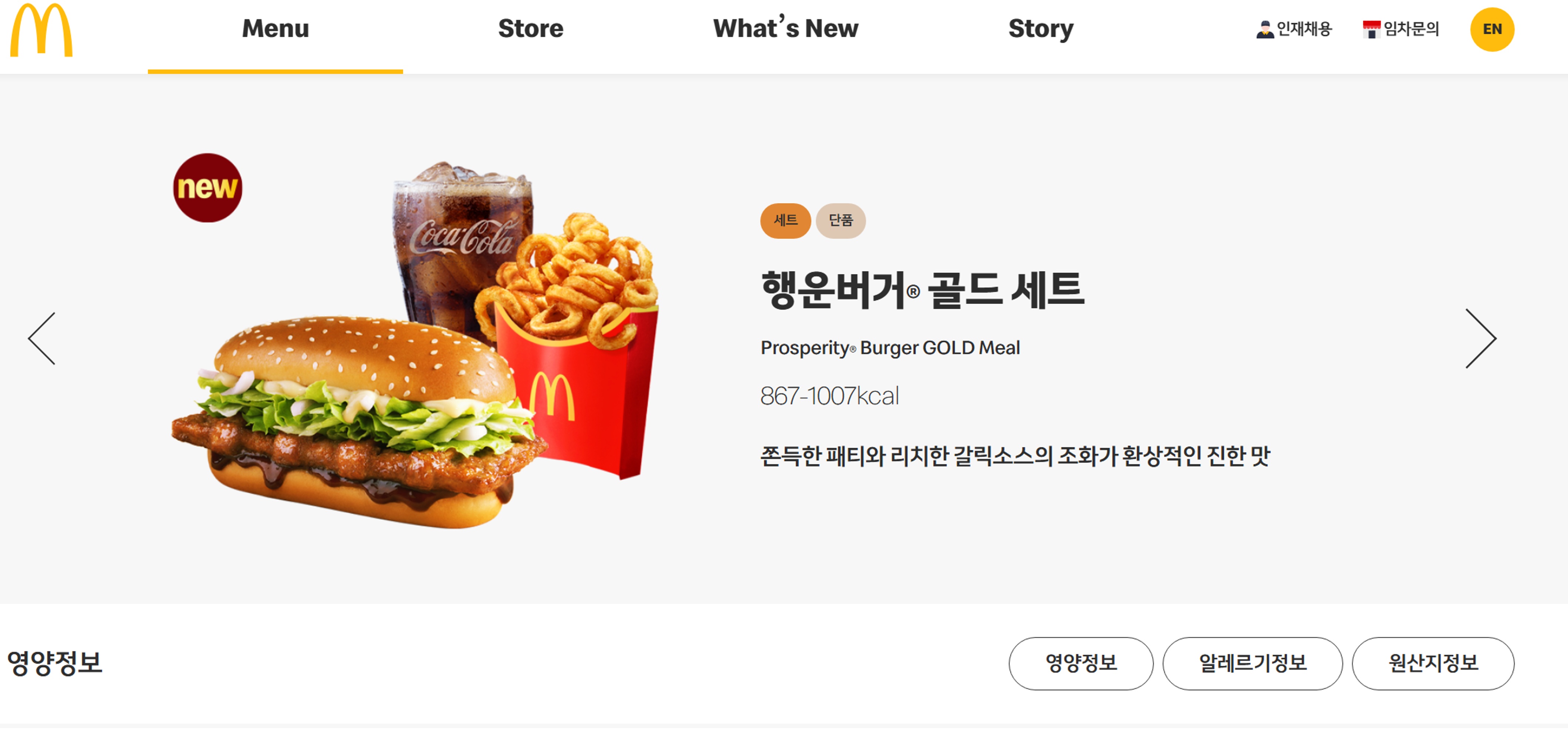 이번 12월 맥도날드 런치메뉴의 하이라이트는 단연 행운버거 골드 스페셜 세트입니다. 쫀득한 패티와 리치한 갈릭 소스의 조화에 바삭한 해쉬브라운까지 더해져 기분 좋은 꽉 찬 맛을 자랑해요. 1028에서 1168킬로칼로리로 든든한 한 끼 식사로 제격입니다. 해쉬브라운의 바삭함이 버거의 풍미를 더욱 풍성하게 만들어주며, 한 입 베어 물 때마다 다층적인 맛과 식감을 경험할 수 있습니다.