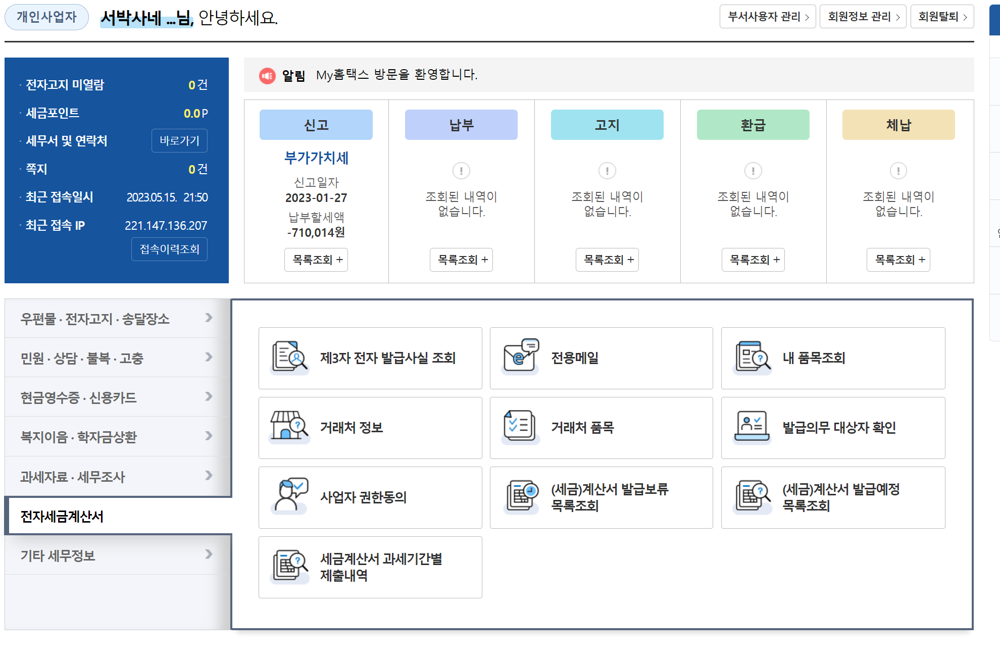 홈택스에서 대상 확인
