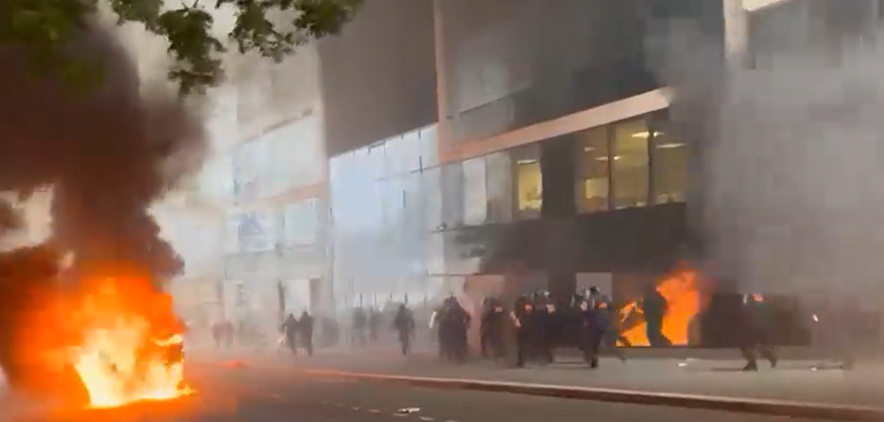 이로 인해 프랑스 내무부는 시위 대응을 위해 약 4만 5000명의 경찰을 특수부대, 장갑차, 헬리콥터와 함께 파리, 리옹, 마르세이유 등 3대 도시에 투입하였다. 특히, 시위대는 자동차와 건물에 불을 붙이고, 진화하기 위해 출동한 소방관들에게 돌을 던지고 있다. 마르세이유와 파리 인근에선 광범위한 약탈이 발생했으며, 각지의 경찰서는 수십차례 공격을 당해 상당한 피해를 입었다.